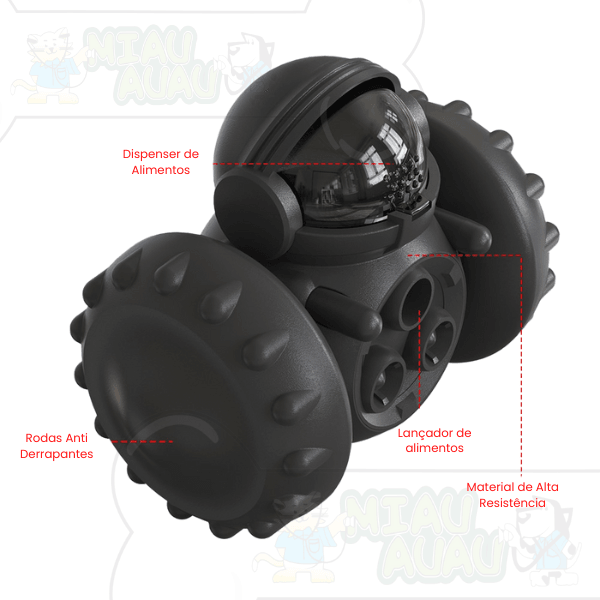 Um robô único, com auto equilíbrio impossível de ser derrubado, o que garante a motivação de seu pet, melhora de atenção cognição e ainda diminui o desperdício de ração e guloseimas