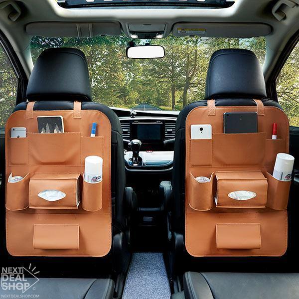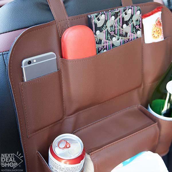 Limpe a bagunça em seu carro com este organizador de banco traseiro de carro bem projetado! Use-o para guardar garrafas, telefones, tecidos, revistas, guarda-chuvas e muito mais!