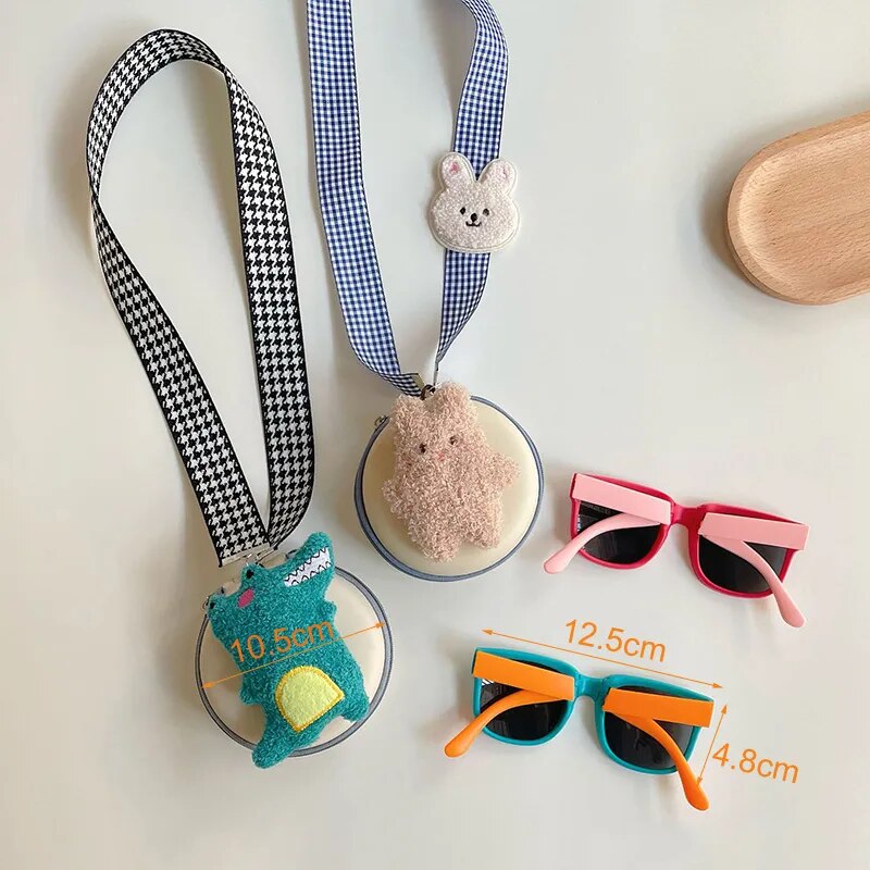 Óculos de Sol Infantil Dobrável e Flexível UV400 Com Caixinha de Pelúcia