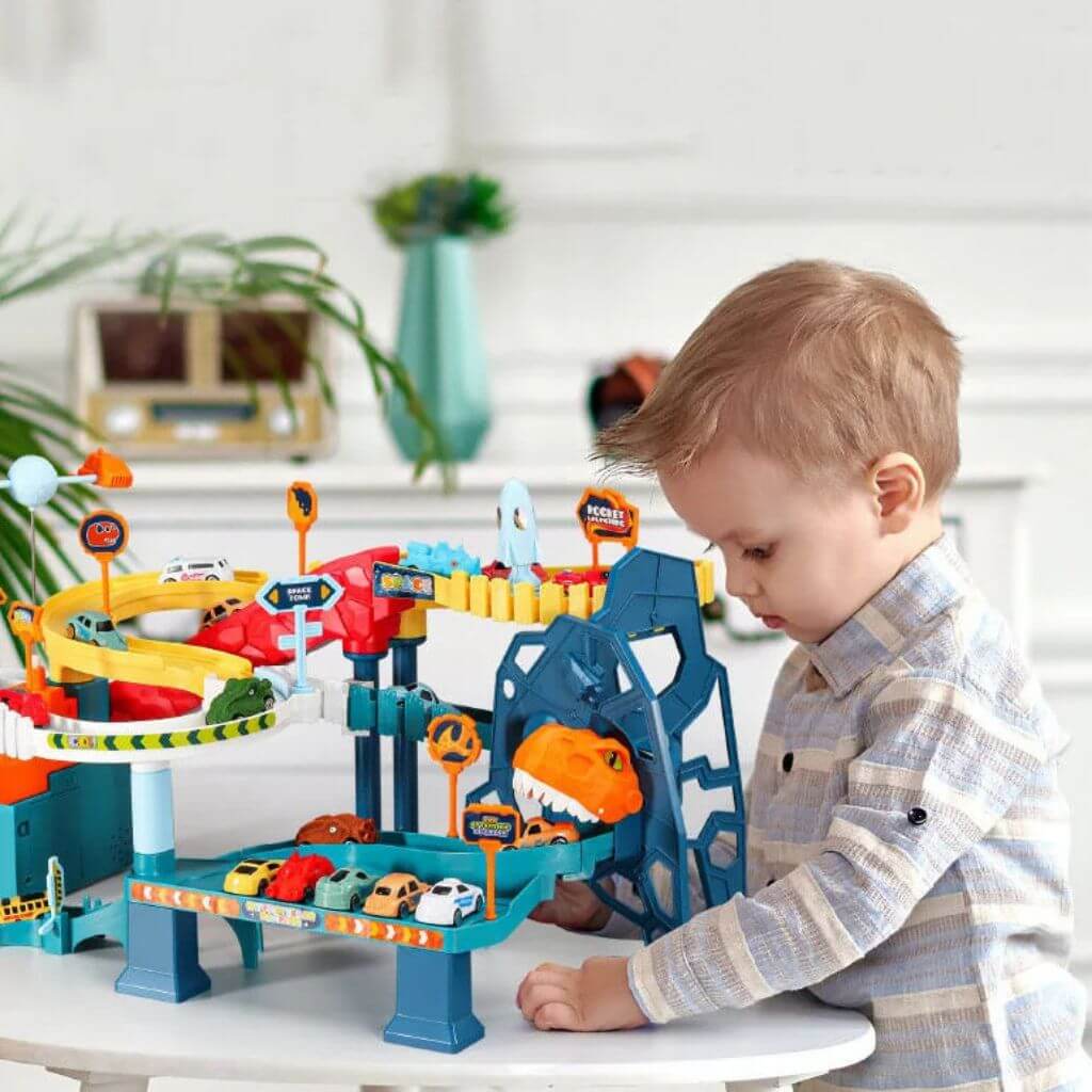 Prepare-se para uma aventura emocionante com a Pista de Carrinho Dinossauro Espacial! Esta pista de corrida única oferece aos pequenos a oportunidade de embarcar em uma jornada épica repleta de emoção e diversão.